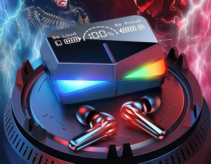 - Estojo de Carregamento: Design moderno com display de informações de carregamento.