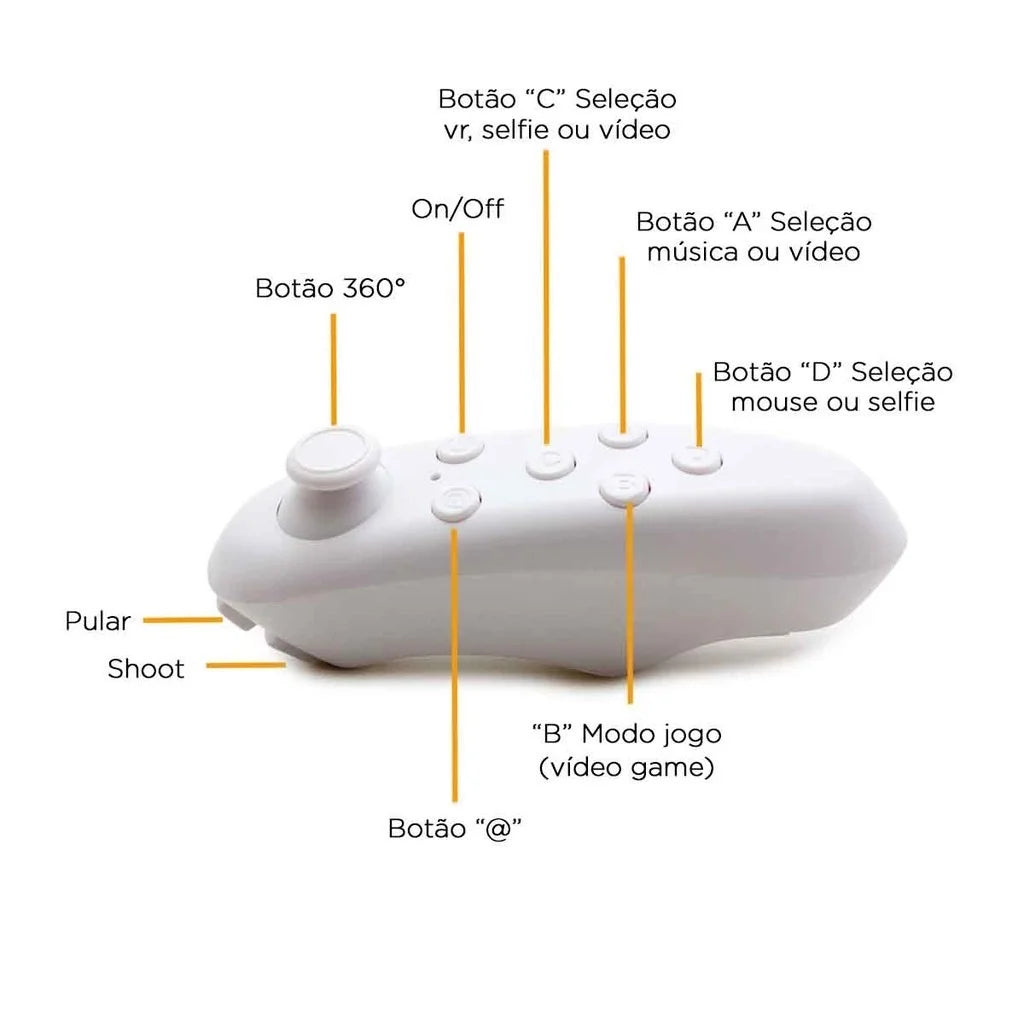 - O Controle é Seu! O kit inclui um controle sem fio Bluetooth, que transforma seu smartphone em um console portátil. Use-o para navegar, jogar e controlar suas mídias com total liberdade, seja com seu VR Box ou com o Google Cardboard.